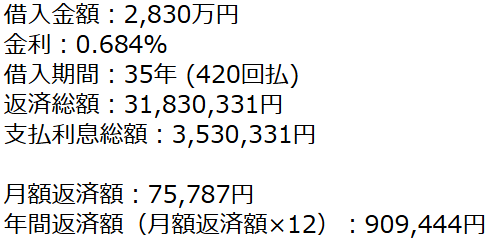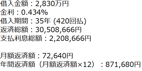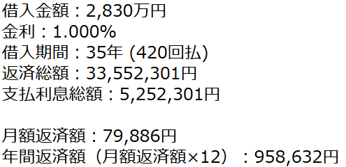 仮に借入額が2830万円で金利が0.434%から1%になった場合