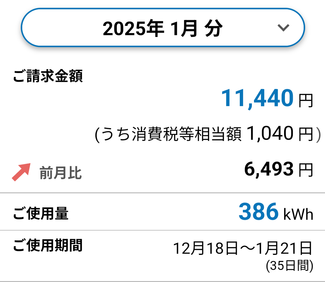 めちゃくちゃ電気使っているのにこれだけで済んでるのは有り難いです。