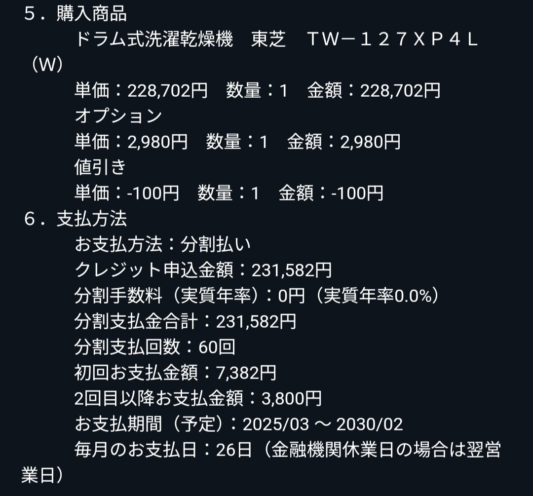 それが無いということは一括でドラム式洗濯機を買うのと支払い総額は変わらない訳です。