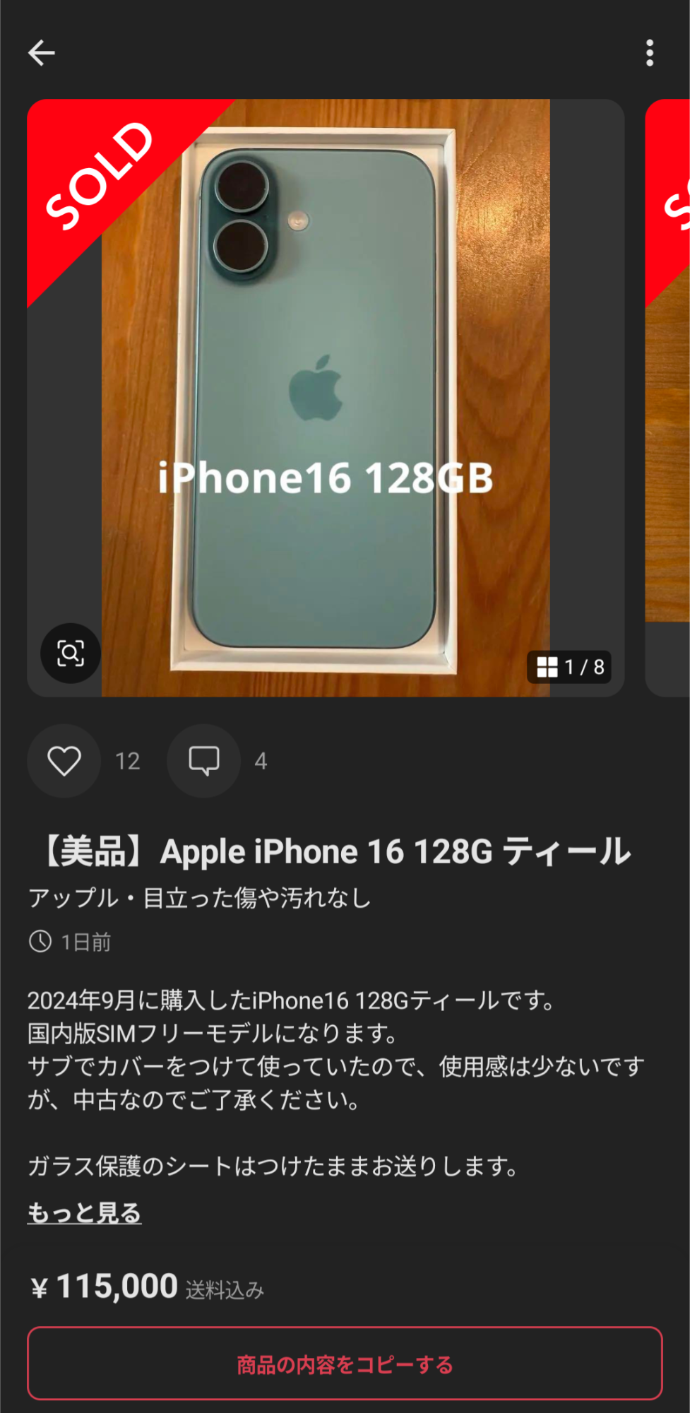 一方でメルカリでのiPhone16の128GBの中古販売相場は大体12万弱。