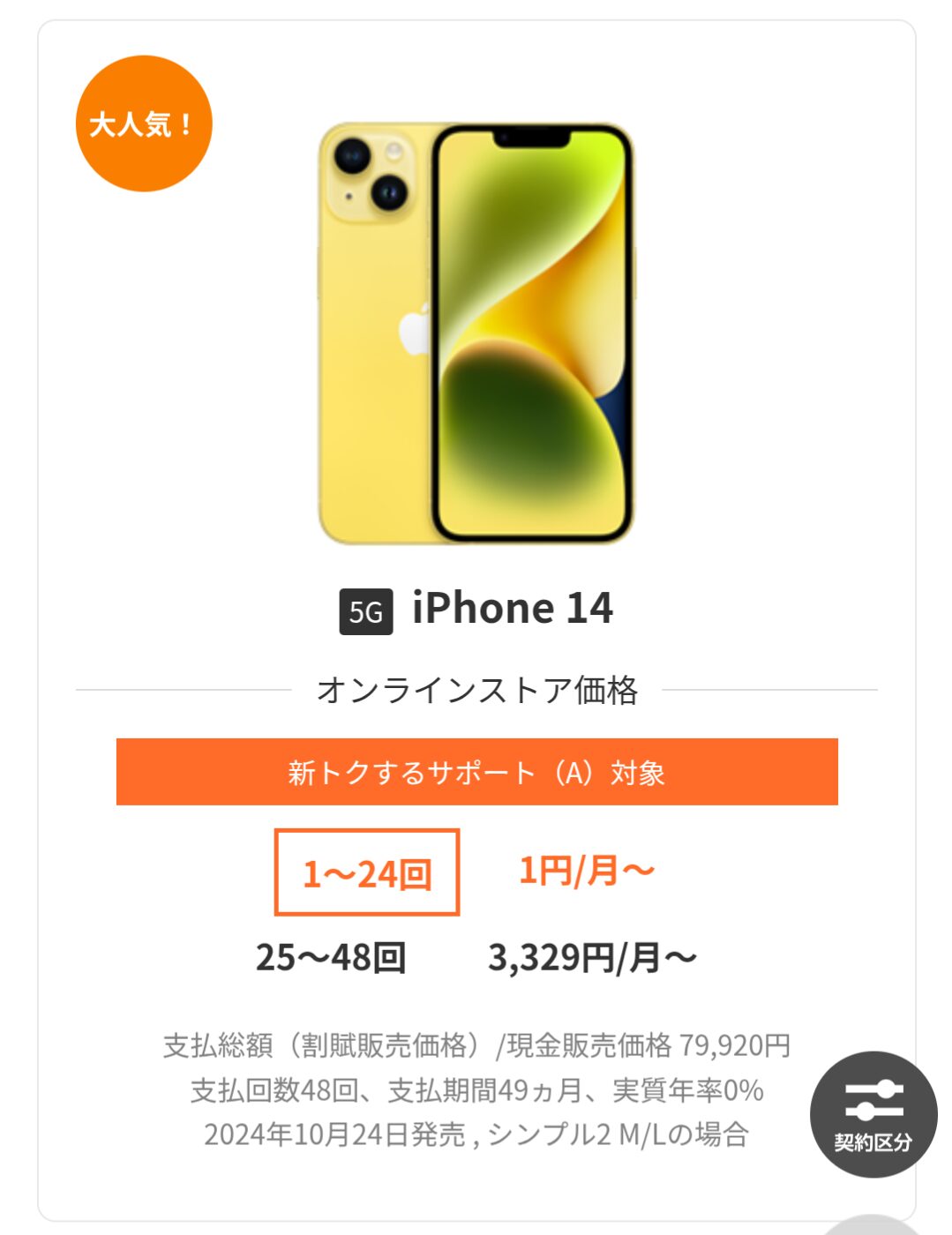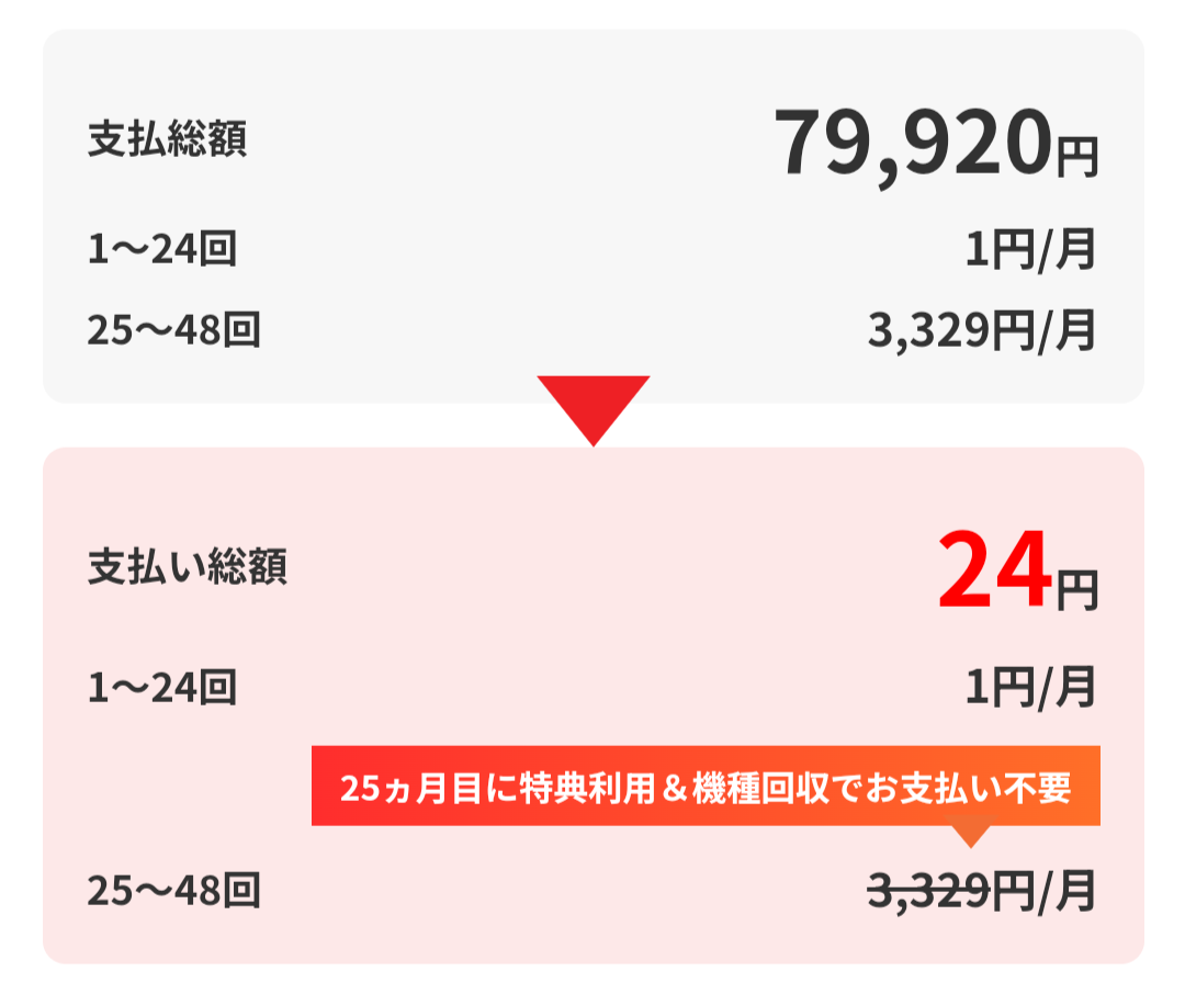 iPhoneを24回払いの24円で買えちゃう、とか