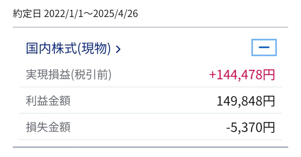 国内株式の方は2023年1月から半年くらい取引して得た利益です。