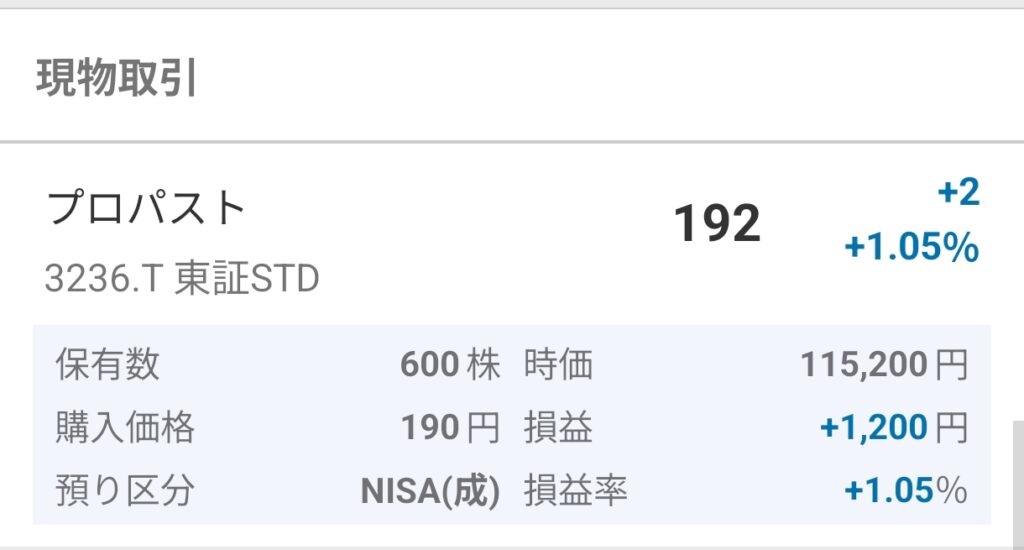 東証スタンダード上場企業のプロパストという企業を10万円ちょっと購入しています。