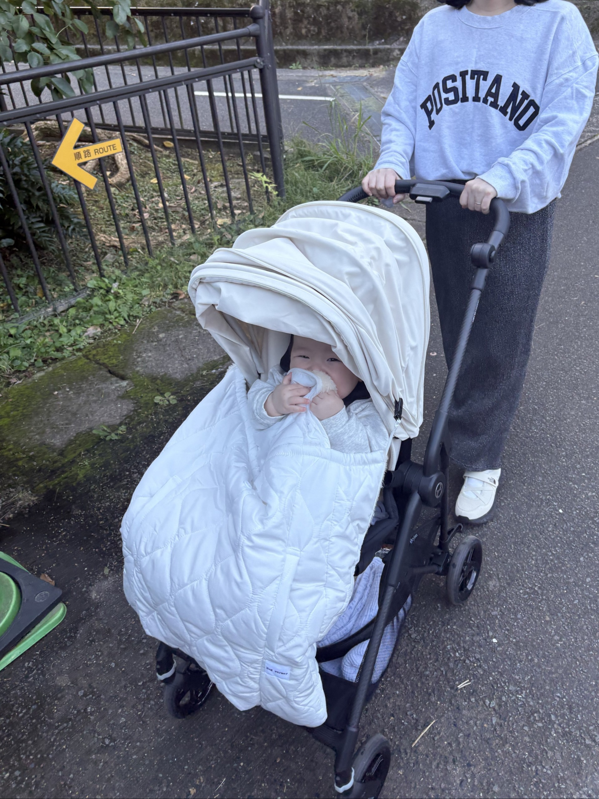 今日は肌寒かったので抱っこ紐やベビーカーに使える防寒ケープを下ろしました。