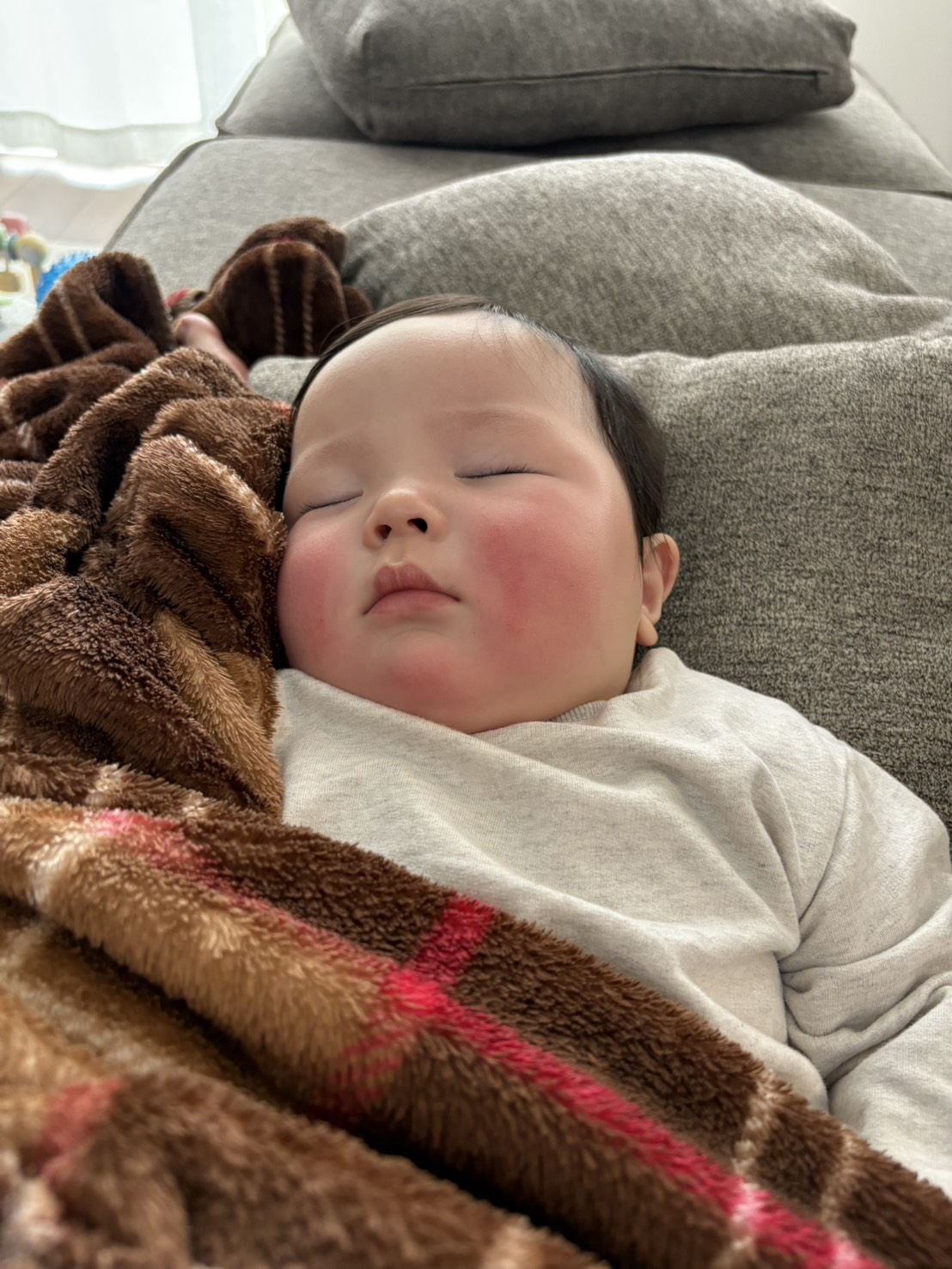 昨日のほっぺた真っ赤だった顔から